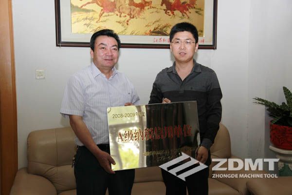 中德機床榮獲“2008-2009年度安徽省A級納稅信用單位”榮譽稱號